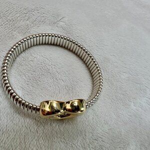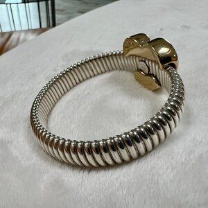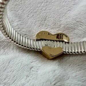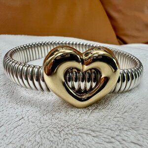 Rare Designer Signed 925 Sterling & 14K Yellow Gold Heart Bracelet
