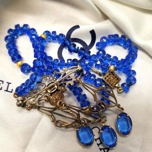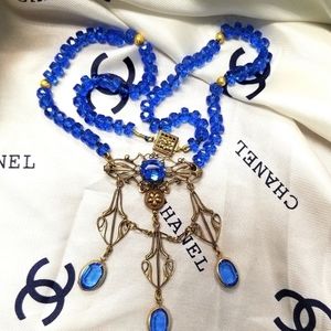 Rare Designer signed SADIE GREEN DECO Sapphire Crystal Necklace Brooch