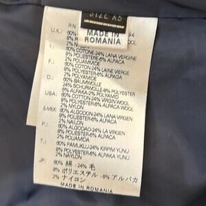 Made from a dense alpaca-wool blend with a textured indigo tweed collar. Features a paneled, sculpted fit with a flared peplum hem, exposed silver zippers, leather zip pulls, epaulettes, and buckle-tab adjusters.
