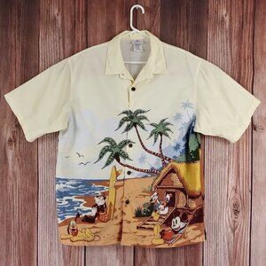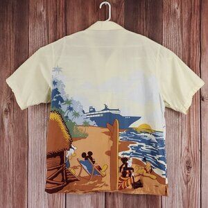 Rare Disney Cruise Line Mens Large Mickey Surfing Palm Tree Hawaiian Camp Shirt