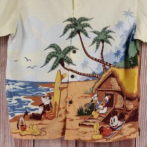 Rare Disney Cruise Line Mens Size Large Mickey Goofy Pluto Donald Duck Surfing Palm Tree Hawaiian Camp Shirt