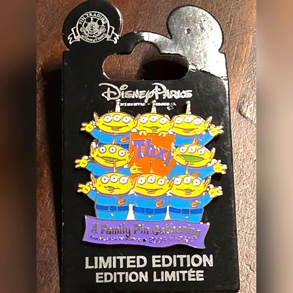 This is a hard to find toy story, family aliens, pin.