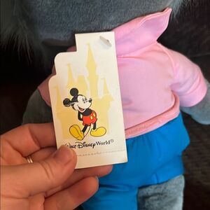 This adorable plush bunny toy features a soft gray body with a cute pink shirt and blue pants. Perfect for cuddling and playtime.