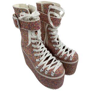 Rare Dolls Kill Club EXX Confetti Rainbow Platform Boots 8 C10523 Festival New
