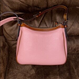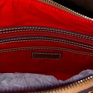 Hard to find color and style. One front zip pocket. One inside zip pocket. Two inside pockets. Cell phone pocket. Inside key hook. Strap drop length 23.5". Top zip closure. Lined.