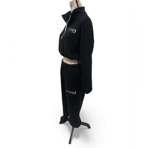 Stay comfy and stylish in this chic black tracksuit set from the exclusive E11EVEN Miami x Los Angeles Apparel line.