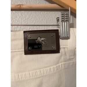Rare ETRO Floral Printed Denim Ankle Jeans Womens 28 Cream Embroidered Tapered