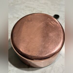 Delve into the charm of vintage craftsmanship with this rare early antique copper pot from the 1900s. It features a durable cast iron handle and is lined with tin, a testament to the era's practicality and attention to detail. The pot showcases an elegant silhouette and the classic beauty of copper, making it a standout piece for collectors and home decor enthusiasts alike.