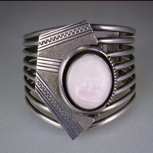 Rare Early Will Denetdale NAVAJO STERLING SILVER & MOTHER-OF-PEARL Cuff BRACELET