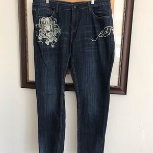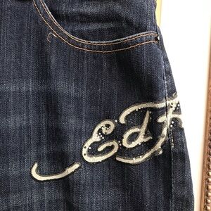 Very rare Ed Hardy jeans with great “love kills” design some distressing. 19" flat across waist, rise 10", inseam 32" straight leg