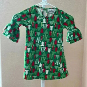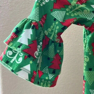 Rare Edition 3T green red white and black long sleeve dress with ruffle sleeves