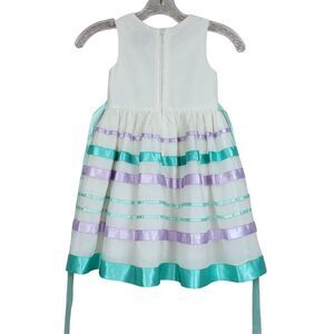 Rare Edition Dress Flowers Ribbons Sleeveless 2T / 3T Off White Party Spring