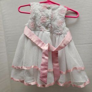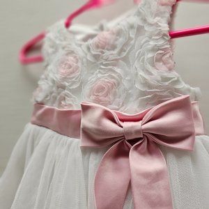 Rare Edition Girls Infant Toddler Pink White Satin bow Flower Dress Sleeveless 9