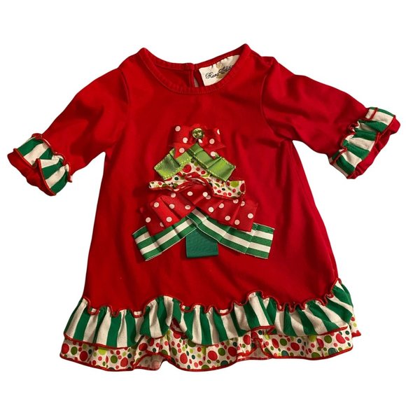 Rare Editions 18 month Christmas Dress Baby girl Ribbon tree Festive Holiday