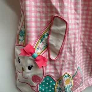 Rare Editions 2T Girls Pink Gingham Easter Bunny Short Sleeve Blouse Teal Bow
