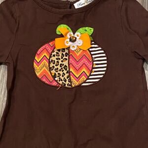 Brown Knit Top With Piecework Pumpkin Appliqué