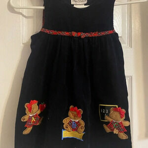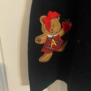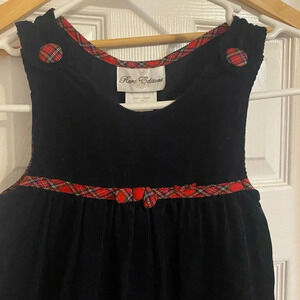 The cutest navy blue jumper with red plaid buttons and accent on chest