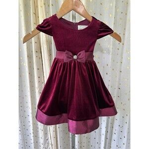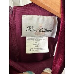 Rare Editions Baby Girl Velvet Taffeta Trim Rhinestone Social Formal Dress 18M