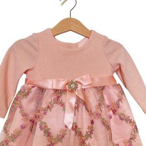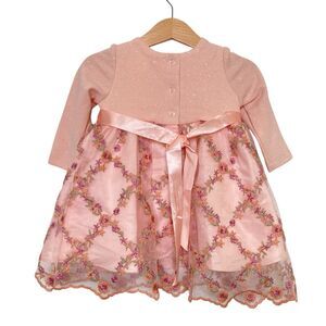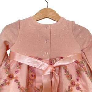 Rare Editions Baby Girls 12 M Glitter Dress Embroidered Floral Skirt Pink Bow
