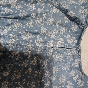 Rare Editions Blue Floral Chambray Kids Dress 6x