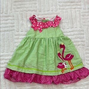 Rare Editions Gingham & Polka Dot Flamingo Summer Dress 12 month Good condition