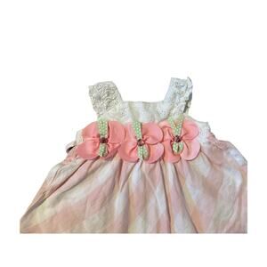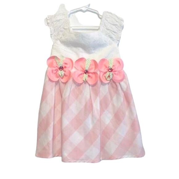 Rare Editions Girls 12M Pink and White Gingham Flower Embroidery Summer Dress