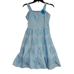 Rare Editions Girls Blue Sundress W/ Pleated Bodice & Embroidered Circle Pattern