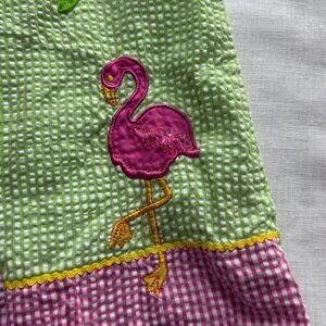 Rare Editions Girls Dress Size 5 Palm Tree and Flamingo Pink and Green Gingham
