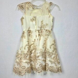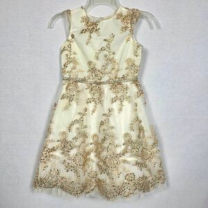 Rare Editions Girls Dress Size 8 Ivory Gold Sequin Lace Tulle Party Dress Rhines