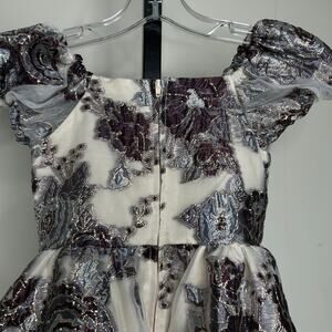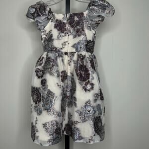 Rare Editions Girls Dress-6 girl-floral with metallic, fully lined puff sleeves