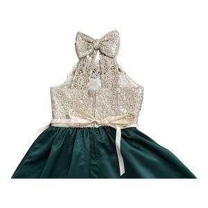 Rare Editions Girls Green Gold Lace Beaded High Low Formal Dress Size 10