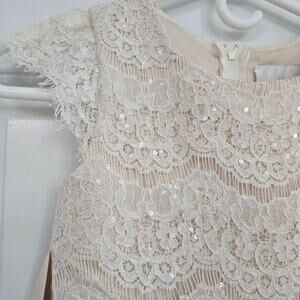 This Rare Editions girls' dress is perfect for any special occasion! Featuring a beautiful cream lace overlay and a lovely flower sash, it's ideal for weddings, parties, or holiday events. The dress is in excellent condition and comes from a smoke-free, pet-free home. Let your little one shine in this elegant dress!