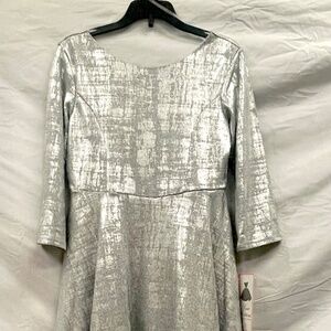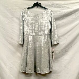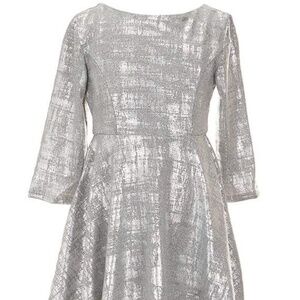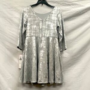 Rare Editions Girl’s Long Sleeve Shiny Silver Party Dress Size 14