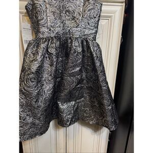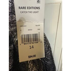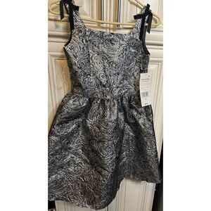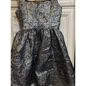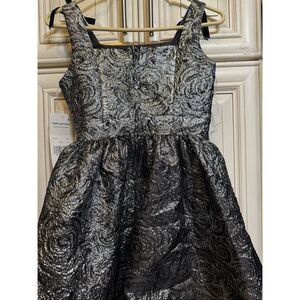 Rare Editions Girls Metallic Brocade Fit & Flare Social Dress Silver Size 14 NWT