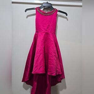 Rare Editions Girls Satin Hi-Low Dress Rhinestone neck NWOT size 7 Berry Pink