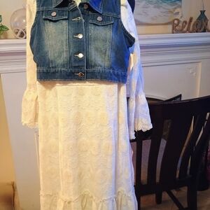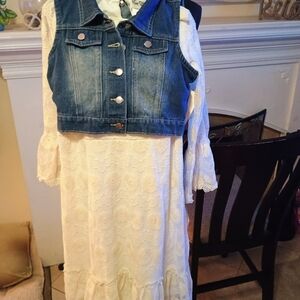 Rare Editions Gold Embellished Sundress Sleeveless Casual Jean Lace New