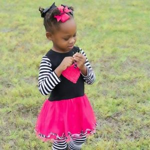 Beautiful Black and White Stripes with Pink Heart Applique and pink tulle Tutu dress with black and white stripes leggings.