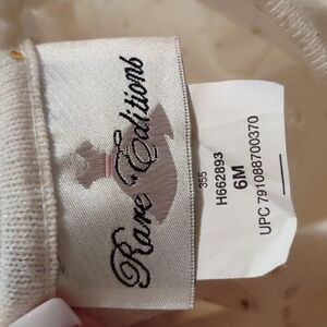 Absolutely adorable Rare Editions cream knit holiday set with gold stars and a satin bow at the shoulder. EUC; no stains, snags or signs of wear anywhere.