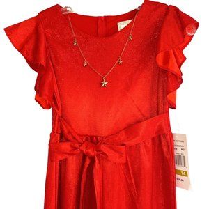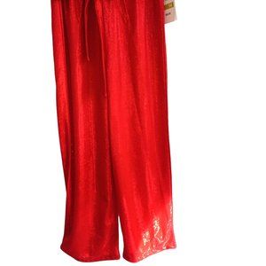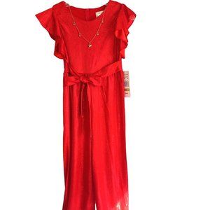 Rare Editions Holiday Sparkles Red Jumpsuit NEW Junior Sz 14 Flutter Sleeves Tie