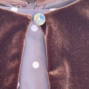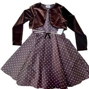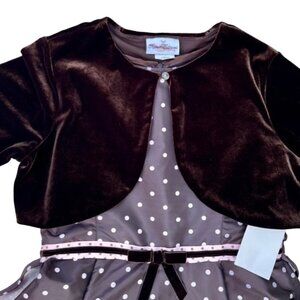 Rare Editions NWT Girls Velvet Cardigan Dress Set Brown Pink Polka Dots Midi 16
