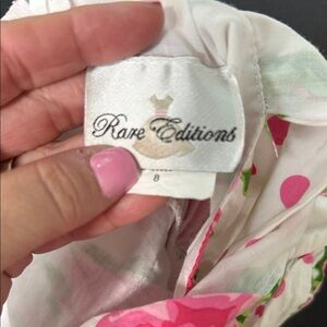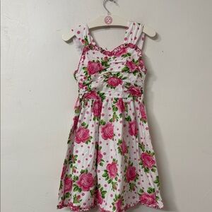 Charming kids dress featuring a delightful pink floral pattern on a white background. Perfect for any special occasion.