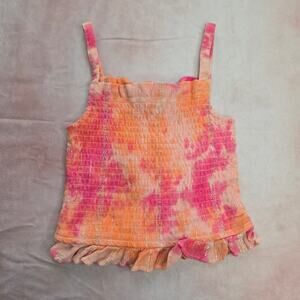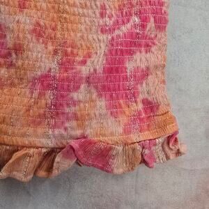 Rare Editions Pink Orange Cropped Top Girls Sparkle Glitter Ruffle Smock 10