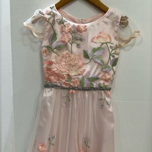 This captivating sundress by Rare Editions showcases a tiered maxi design in a charming pink and green color scheme, ideal for weddings or cocktail gatherings. Featuring a crew neck and flutter sleeves, it exudes elegance and grace. The dress's flowing silhouette and vibrant hues ensure it stands out at any special occasion.