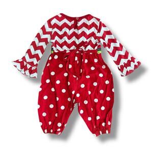 Rare Editions Red Chevron & Polka Dot Ruffle Baby Romper 12–18M Holiday Outfit