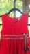 Girl's corduroy jumper style dress. Red with small black polka dots. Black and white border accent at waist with hanging Scottie dogs. Scottie dog and apple border at front hem. Buttons at back. Size 6X. Good pre-owned condition.