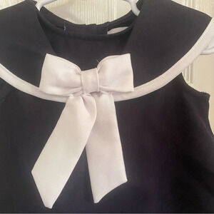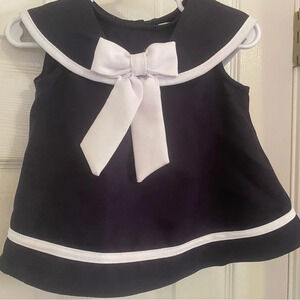 Navy blue sleeveless dress with sailor collar trimmed in white