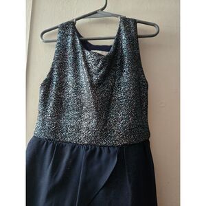 Rare Editions Size 8 Girls Dress, zipper side on bodice, tie in back, beautiful blue color with silver on top asymmetrical dress