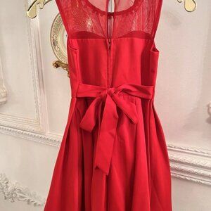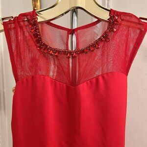 Rare Editions. Sz 7. Girls Red Beaded Dress. Zip. Tie. Lining w Crinoline AL