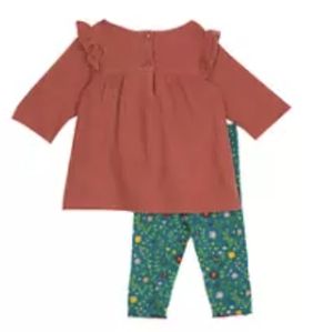 Featuring cute floral pattern leggings, this Rare Editions set is great for your little one. Set includes a round neck, a keyhole with a button closure top, and an elastic waistband on the leggings.