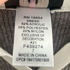 Rare Editions V Neck Long Sleeved Gray and White Knit Dress Girl’s Size 7